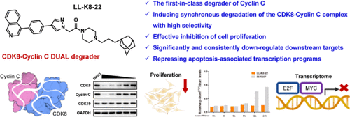 Mingyu Wang#, Rongkun Lin#, Jiacheng Li#, Yuying Suo#, Jing Gao, Liping Liu, Liyuan Zhou, Yicheng Ni, Ziqun Yang, Jie Zheng, Jin Lin, Hu Zhou*, Cheng Luo*, Hua Lin*, Discovery of LL-K8-22: A Selective, Durable, and Small-Molecule Degrader of the CDK8-Cyclin C Complex, Journal of Medicinal Chemistry,2023, 66, 4932-4951 https://doi.org/10.1021/acs.jmedchem.2c02045.